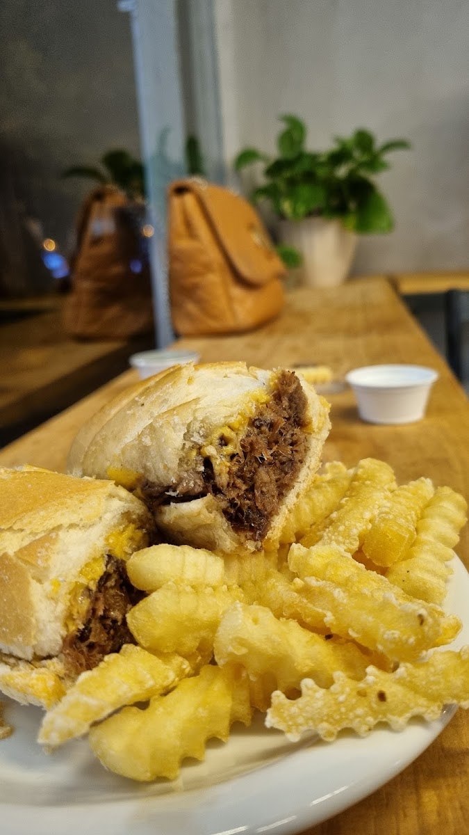 Sanduíche saboroso e com carne bem suculenta, sobremesa e batata frita deliciosos. O atendimento é muito bom e o ambiente agradável.